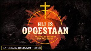 Kom op 30 maart om 20:00 naar ons PaasPraise concert, waar we met muziek en een speciale paasdienst de opstanding van Jezus vieren. Ervaar samen de ware betekenis van Pasen.